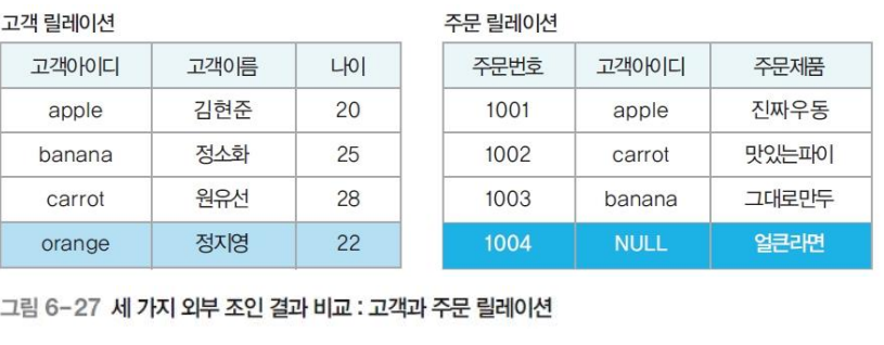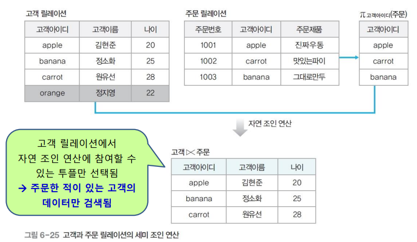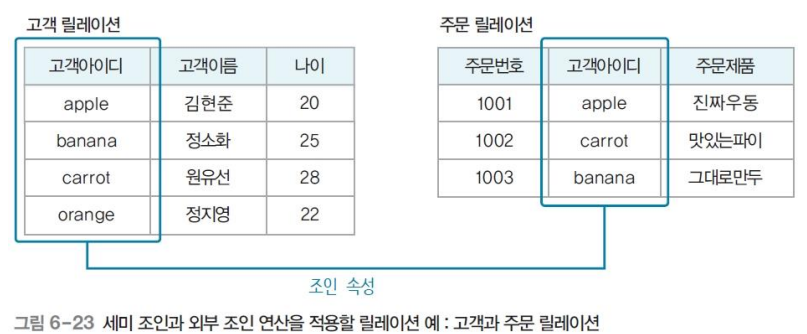 예) 자연 조인 연산을 확장한 세미 조인과 외부 조인