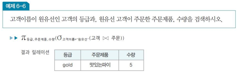 ◆ 관계 대수를 이용한 쿼리 표현 예)