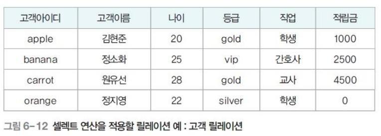 ◆ 순수 관계 연산자 - 셀렉트(select)