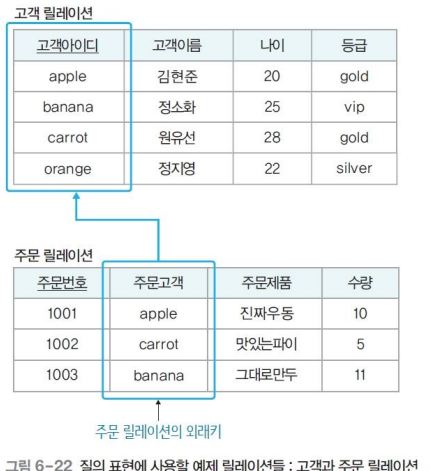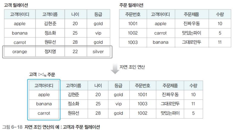 예) 고객 ⋈고객.고객아이디=주문.고객아이디 주문