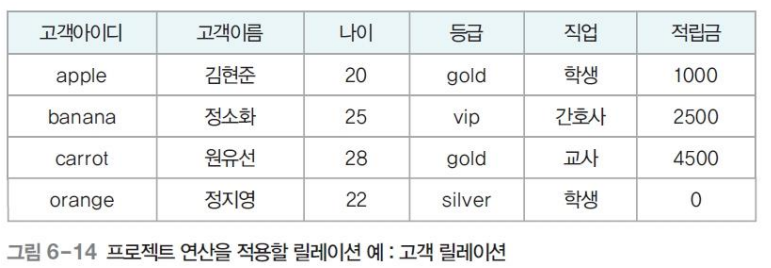 ◆ 순수 관계 연산자 - 프로젝트(project)