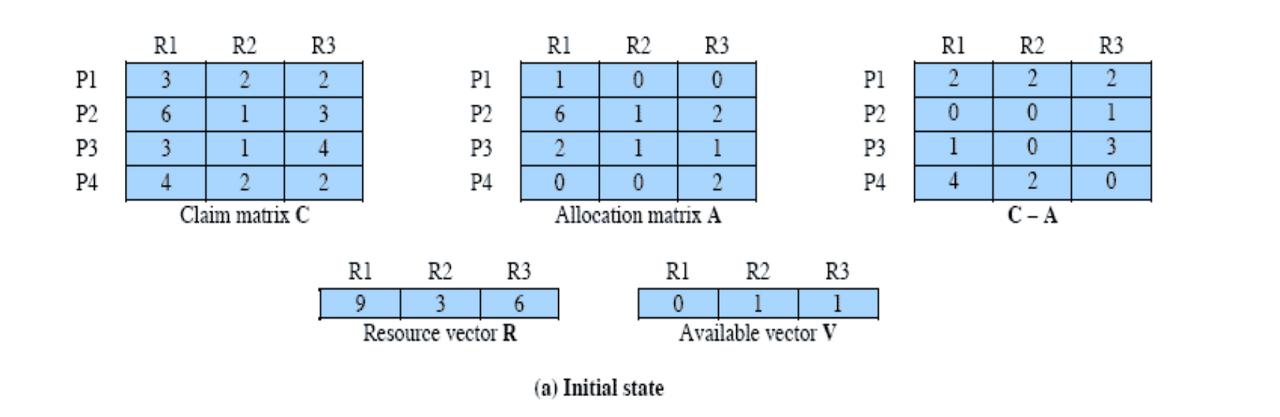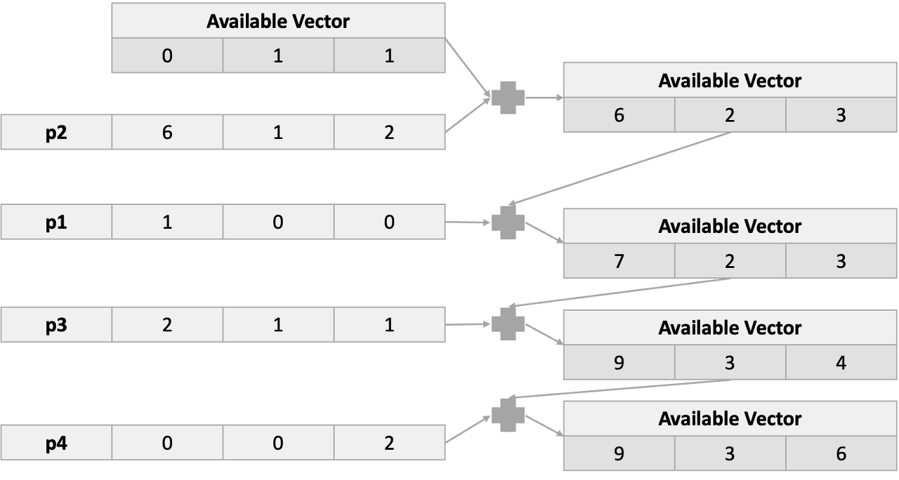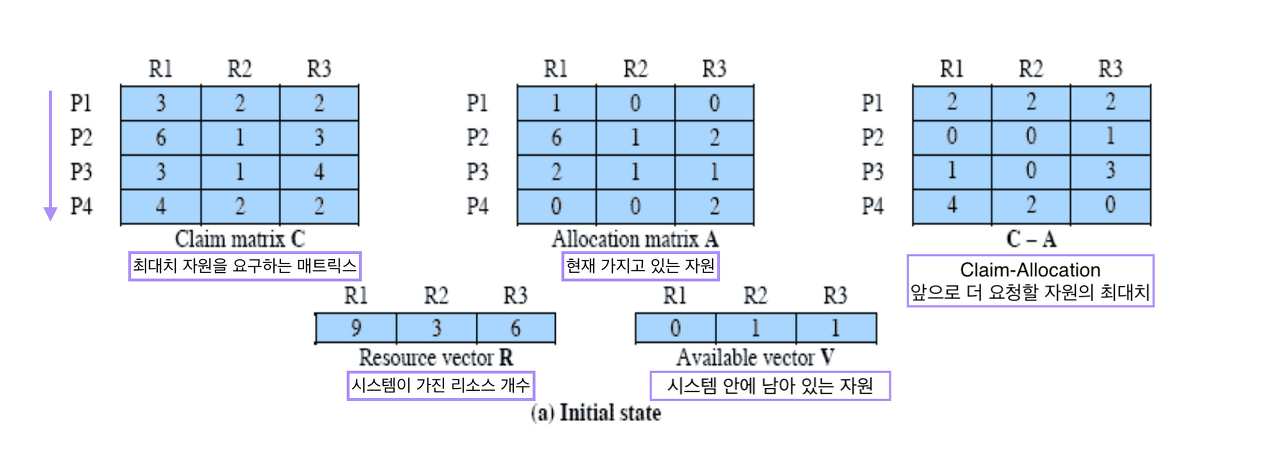 Available vector : 프로세스들에게 할당하고 남은, 시스템 안에 남아 있는 자원