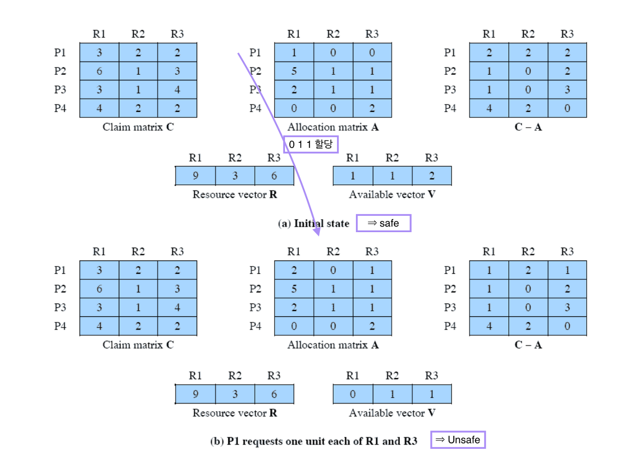 → safe이면 자원을 할당해주고, unsafe이면 자원할당을 거절한다.
