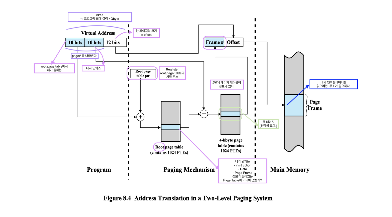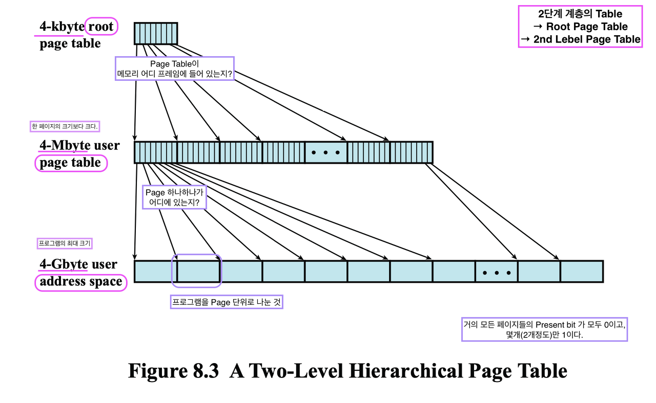 - Page Table 의 크기가 4Mbyte 인데, 이는 한 페이지를 넘어가게 된다.