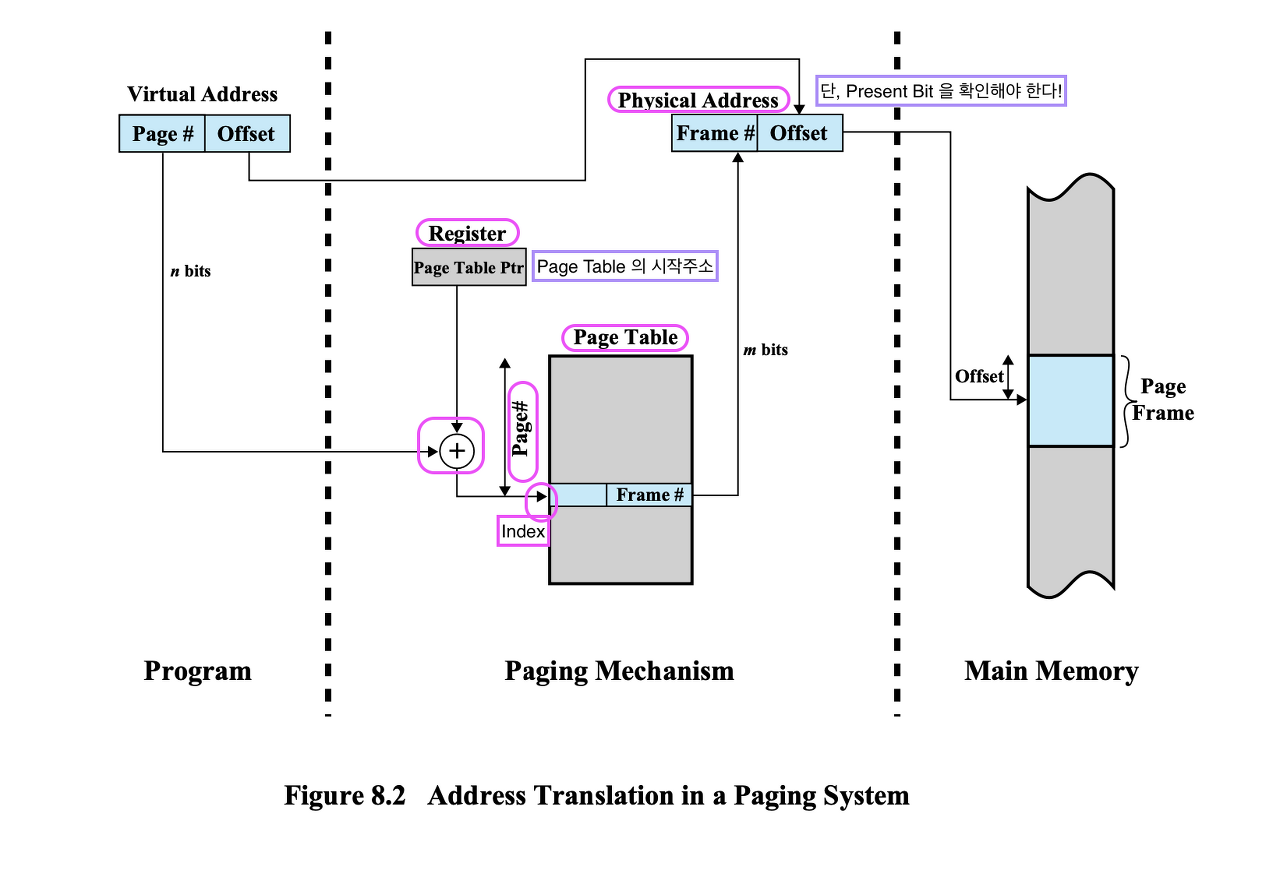 - Page Table 이 필요 → Frame# 필요 → offset 과 연결 ⇒ physical address