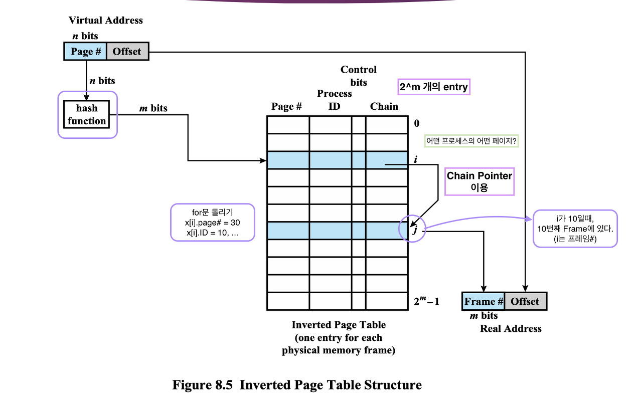 각각의 Inverted Page Table 에는 페이지#, 프로세스#, Chain Pointer 가 존재한다.