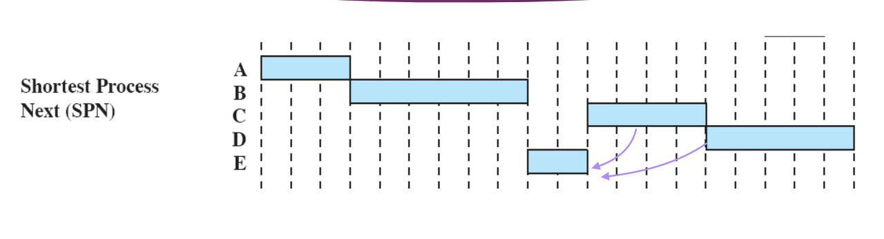 E 때문에 C 와 D 는 우선순위에서 밀려 Waiting Time 이 각각 2시간 해서 총 4시간이 증가하게 되지만, E가 실행시간이 짧고 E의 Waiting Time 이 9시간이 줄어들어서 전체적인 Waiting Time 은 줄어들게 된다.