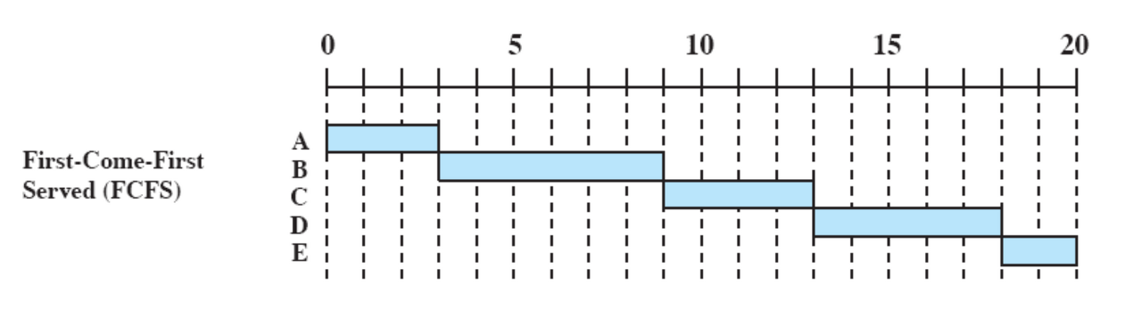 ↳ FCFS 와 RR 모두 먼저 도착한 애가 우선순위를 갖는다.