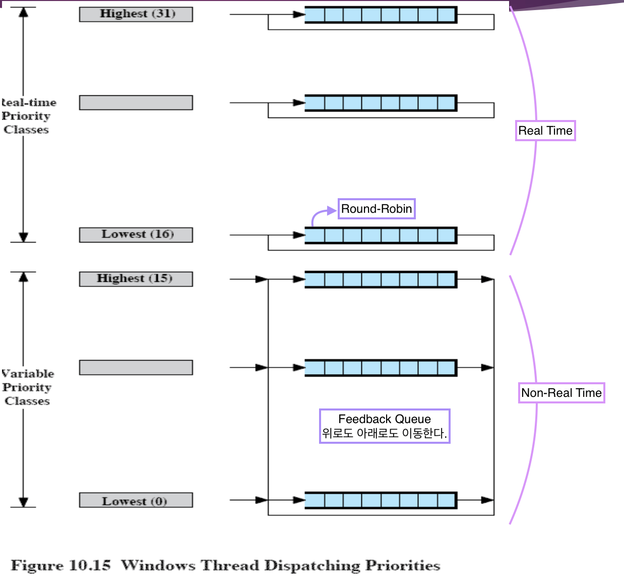 ⇒ 프로세스의 종류에 따라서 base priority 가 결정된다.
