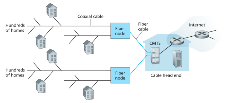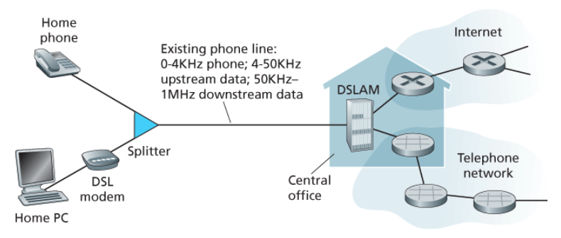- DSL : 지역 전화 회사(telco)의 기존 로컬 전화 인프라스트럭처를 이용