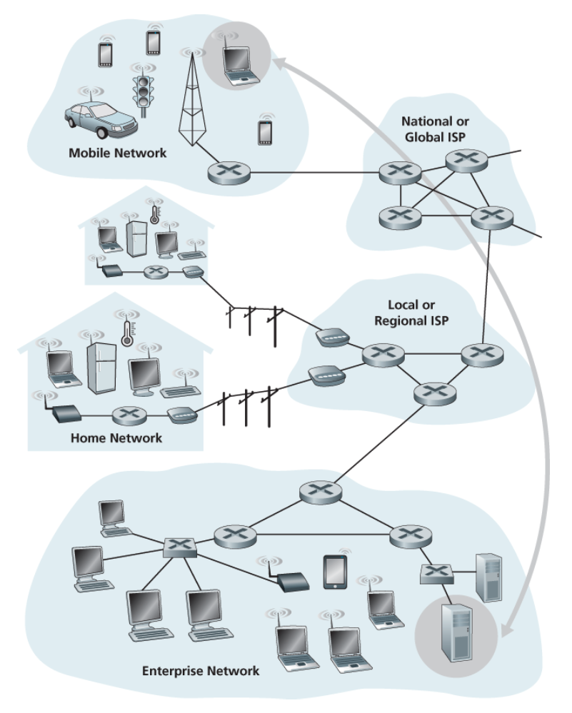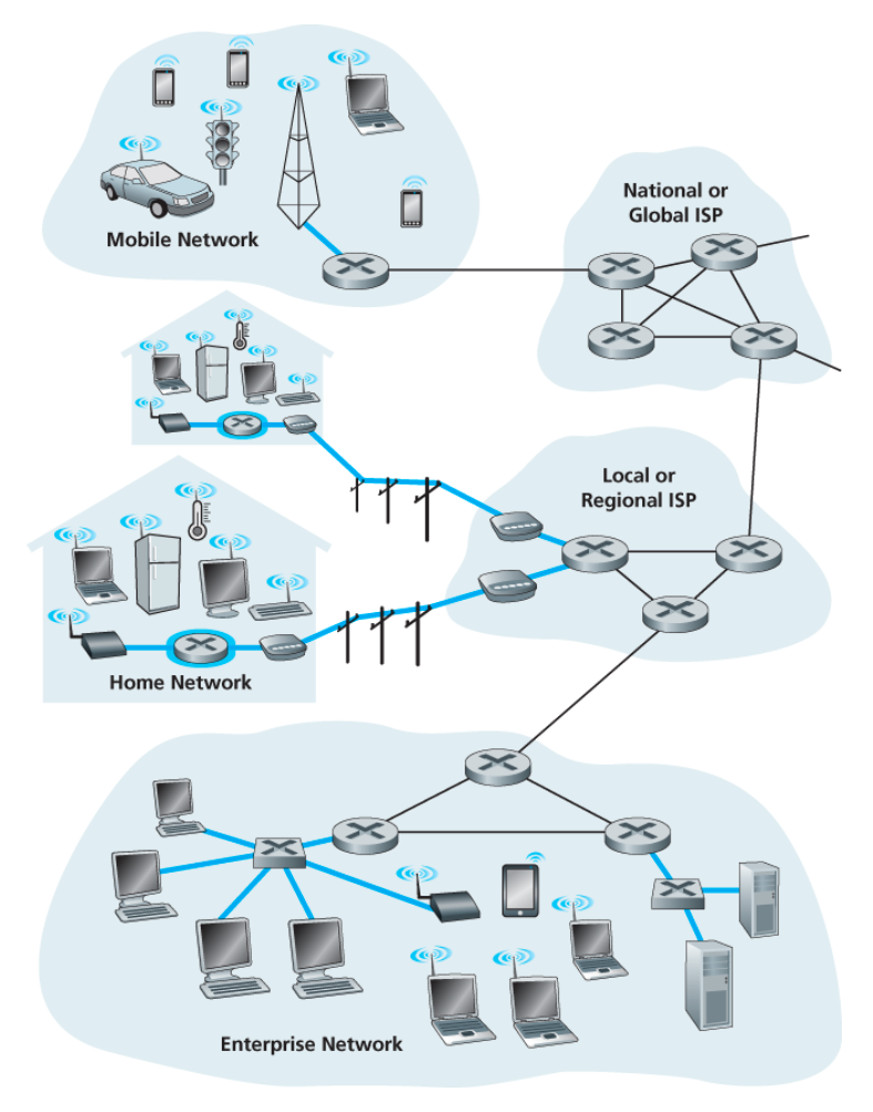 - 하위 계층 ISP는 국가 & 국제 상위 계층 ISP를 통해 서로 연결한다. - 상위 계층 ISP들은 서로 직접 연결된다.