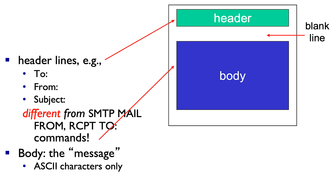 - 이 헤더는 RFC 5322에 정의되어 있으며, 헤더와 몸체는 CRLF로 분리된다.