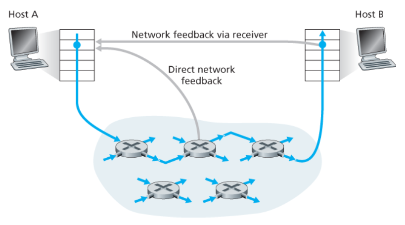네트워크 계층은 혼잡 제어 목적을 위해 트랜스포트 계층에게 어떤 직접적인 지원도 제공하지 않는다.