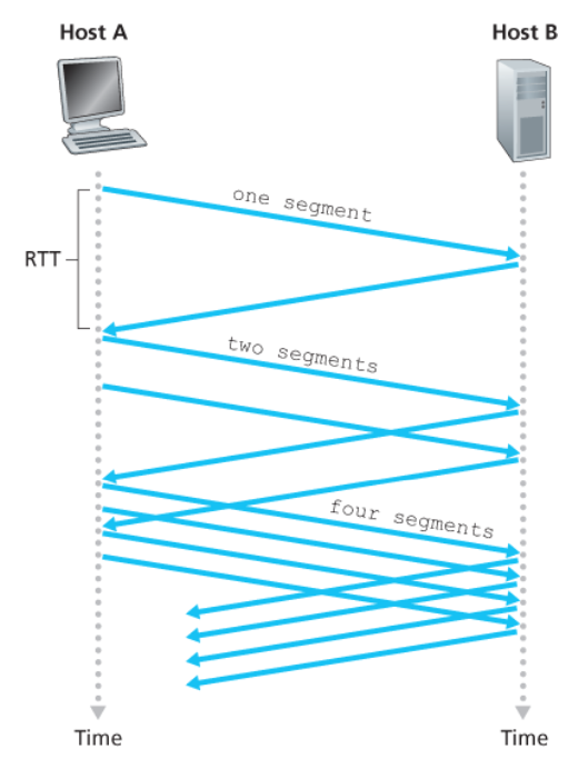 - TCP 송신자로 하여금 손실 이벤트가 발생할 때까지는 ACK가 도착함에 따라 전송률을 증가시킨다.