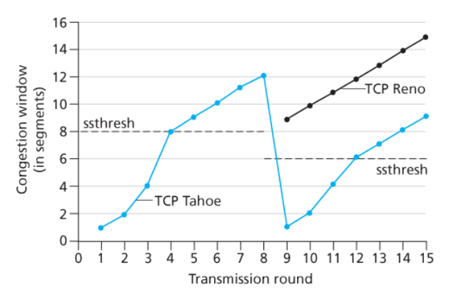 - TCP 세그먼트 손실과 증가하는 왕복 지연값을 네트워크 혼잡의 발생 표시로 간주한다.