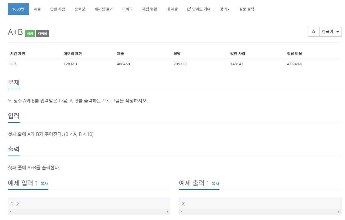 두 정수 A와 B를 입력받은 다음, A+B를 출력하는 프로그램을 작성하시오.