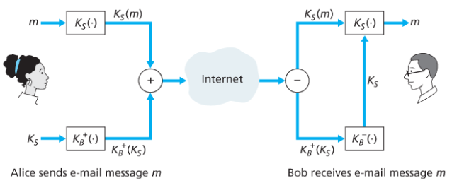 - Ks로 메시지 m을 암호화하여 암호문 1을 얻는다.