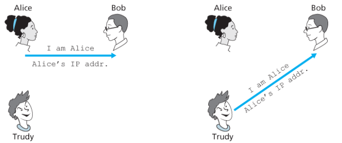 송신자가 이미 알려진 네트워크 주소(IP 주소)를 가지고 통신을 한다면 수신자는 인증 메시지를 가지고온 IP 데이터 그램 출발지 주소가 송신자의 IP 주소와 일치하는지 확인함으로써 앨리스를 인증할 수 있다.