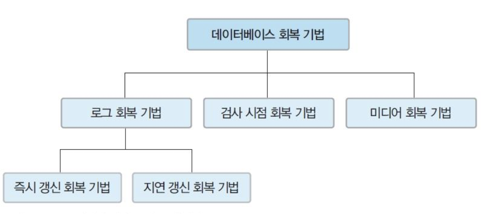 - 로그 회복 기법, 검사 시점 회복 기법, 미디어 회복 기법이 존재