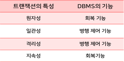 트랜잭션을 관리함으로써 데이터베이스의 회복과 병행 제어가 가능