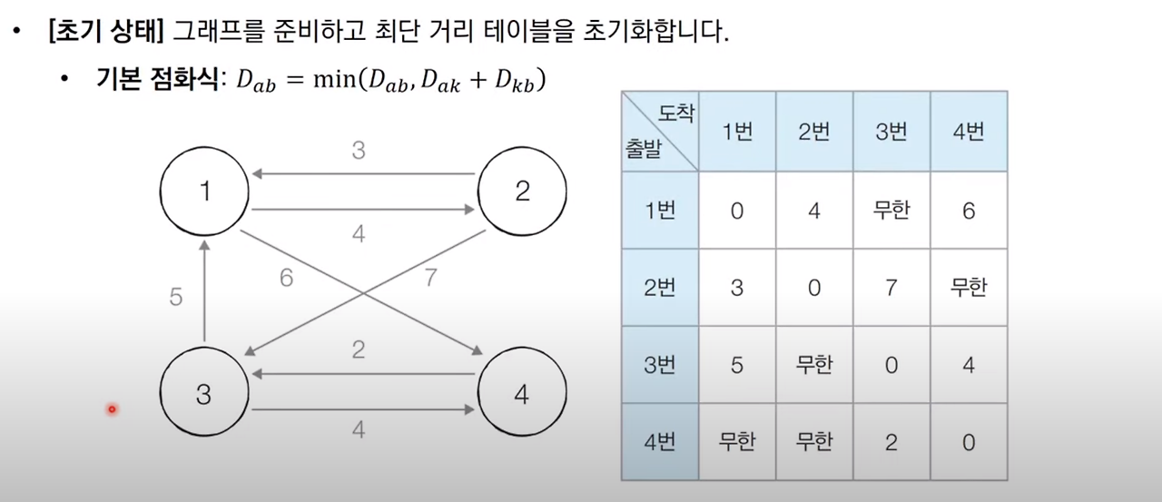 # 점화식에 따라 플로이드 워셜 알고리즘을 수행