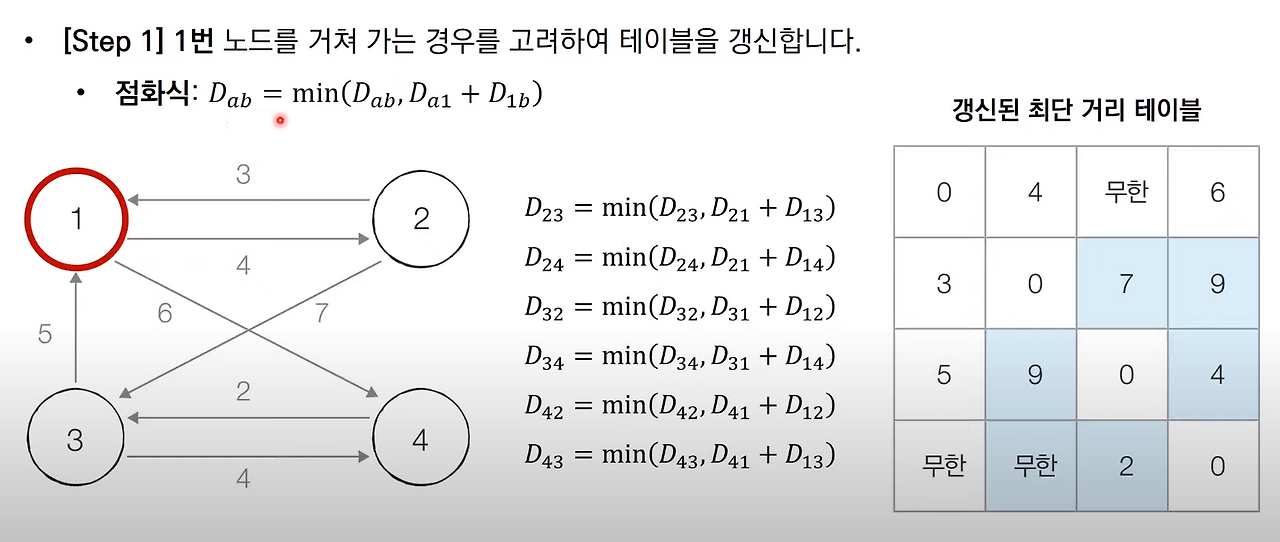 # 점화식에 따라 플로이드 워셜 알고리즘을 수행