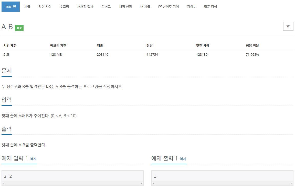 두 정수 A와 B를 입력받은 다음, A-B를 출력하는 프로그램을 작성하시오.