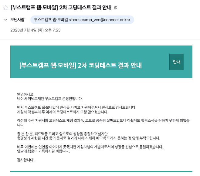 합격날짜가 오면 합격했습니다 라고 메일이 옵니다.