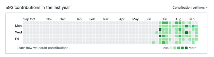 진짜 6월 말~ 7월부터 깃허브 채웠어요.