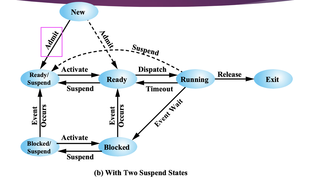 New → 메모리 공간 없음 → Ready/Suspend