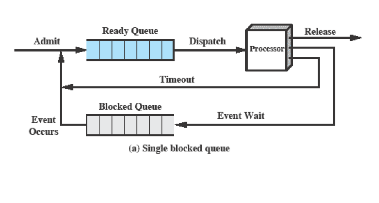 Ready Queue, Blocked Queue 는 Memory 에 들어 있다.