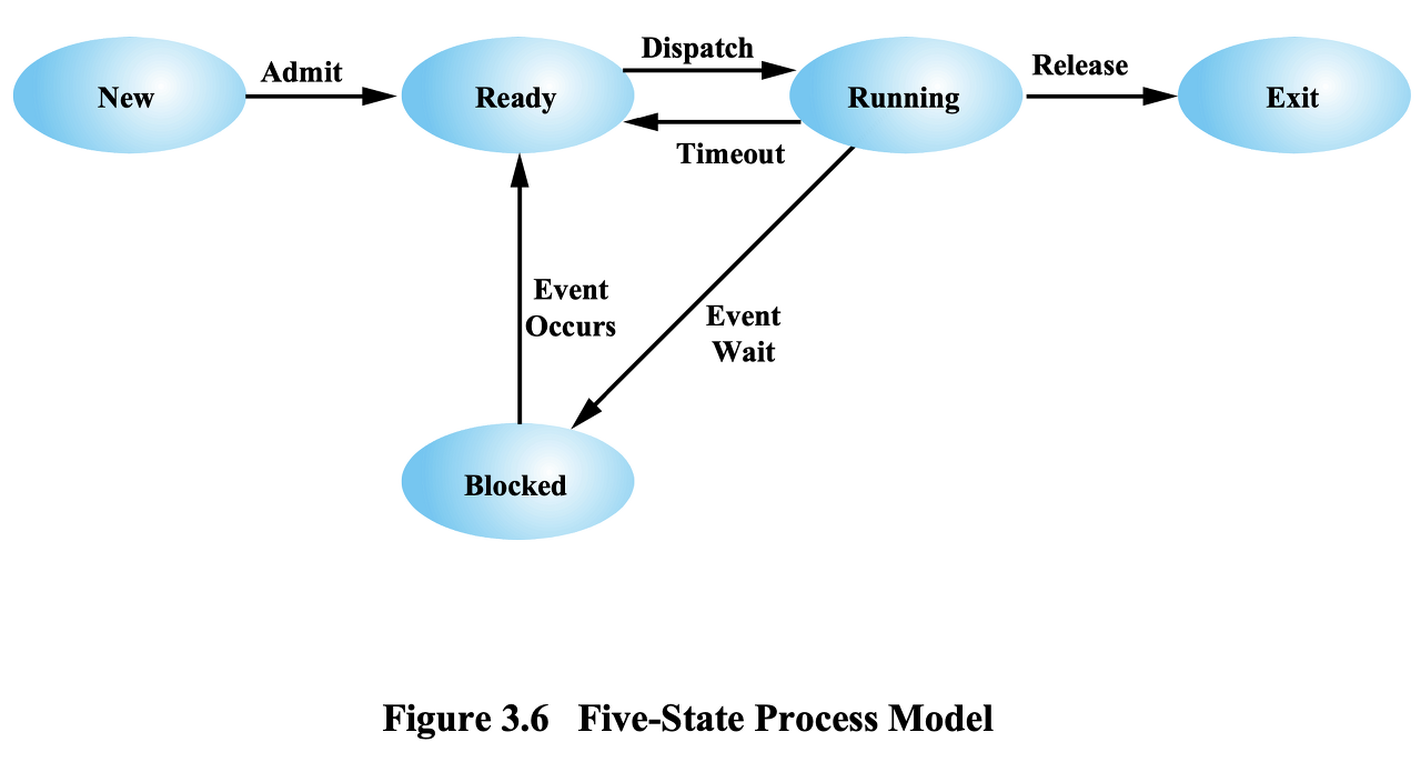 하나의 프로세스의 입장에서 바라본 상태 모델이다.
